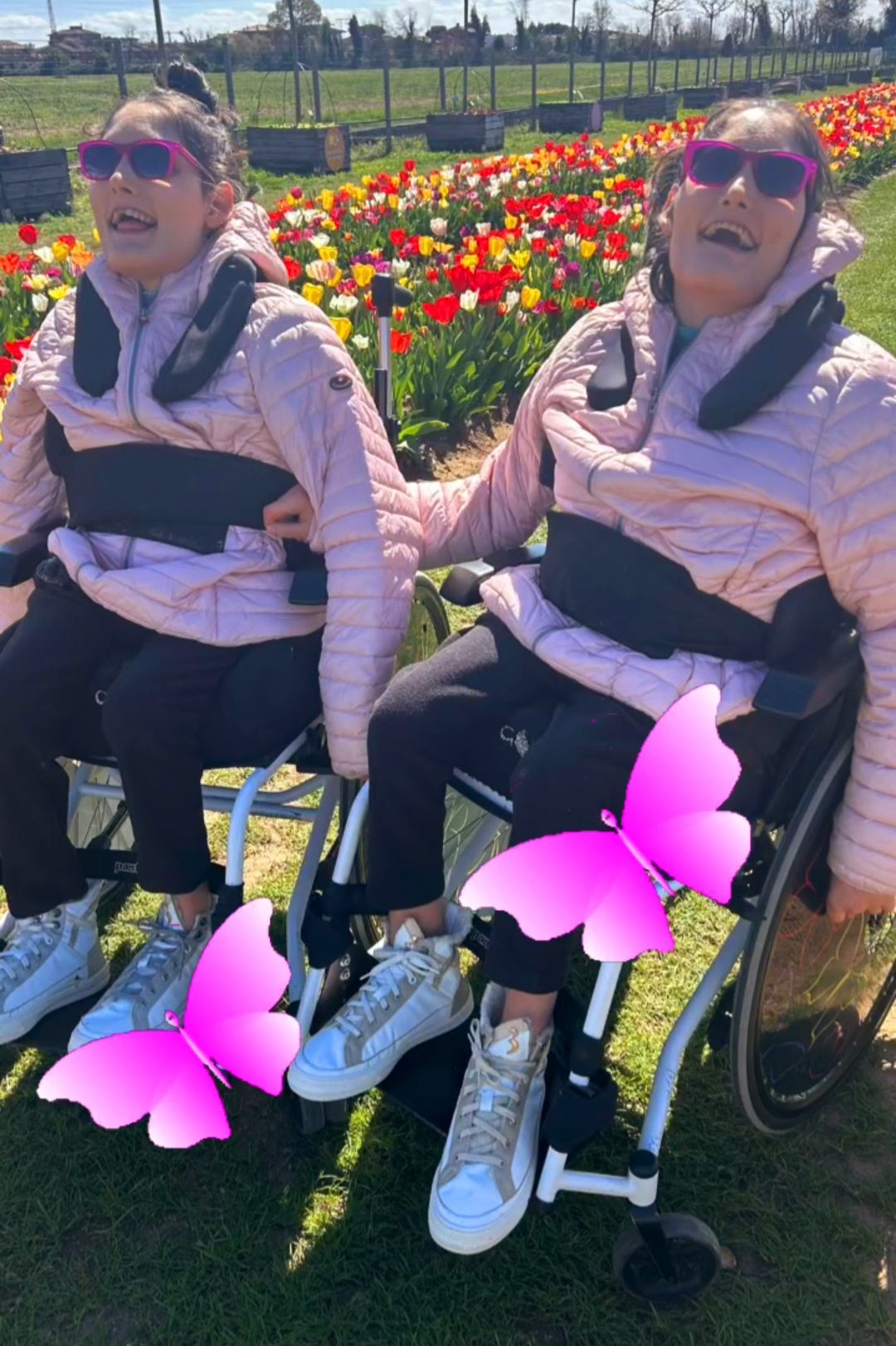 Sono loro le vere protagoniste di tutto! Nonostante la grave disabilità che le accompagna dalla nascita (non possono camminare, muoversi liberamente, parlare, si esprimono solo attraverso gli occhi ed il sorriso) hanno saputo coltivare negli anni, grazie al supporto di mamma, papà, amici e numerosi professionisti, uno dei loro più grandi talenti: L’EMPATIA!